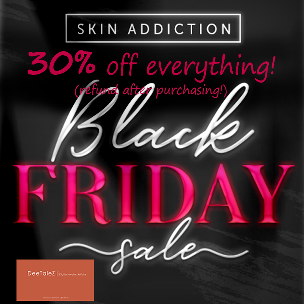 DeeTaleZ in collaboration with Skin Addiction is taking part in their Black Friday Sale. Please do not forget to DEMO before buying. Refund after purchasing.