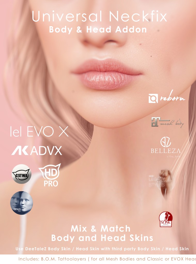 Also! We have more. Updated Neckfix – Now you can use DeeTaleZ Body skins with third party Head skins. Grab your neck fix pack at our mainstore.