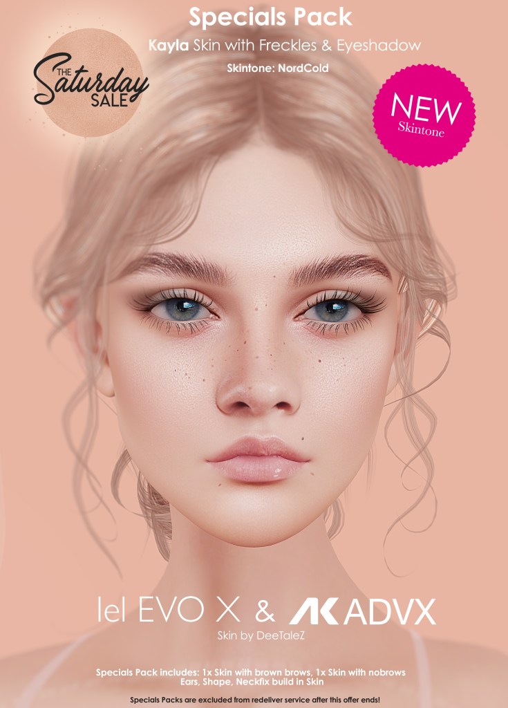 We have *Kayla* made for Lelutka EVO X is for Sale in Velour Second Life Sunkiss tone and our brand new NordCold Tone! More on the new skin tones later!!!