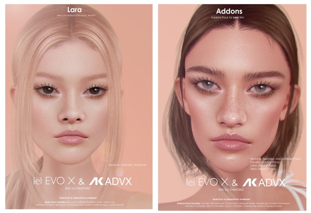 Lara is made for Lelutka Evo X. Comes in two packs – Basic & Addon Packs